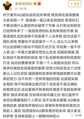 最后就是你们最期待的老帅了!可以看到,AG的中单选手老帅也在这次的转会名单之中。目前老帅的转会费还未知,不肯过以老帅的实力和知名度,可能高到你无法想象!至于为何要转会,老帅也在微博给出了解释。