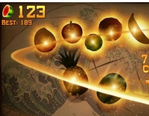这个我们觉得很多人有印象的,在我们几年前的时候,这款游戏是非常火爆的,应该和现在的王者荣耀差不多了,因为是单机游戏,所以不用什么网络的,连切七八个水果都不是问题,但是我们需要注意观察炸弹,因为切到炸弹的话,我们就玩了。