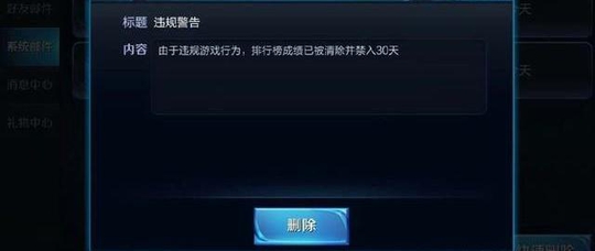没过多久时间,玩家接到了来自系统的惩罚邮件,是对玩家的违规警告,由于玩家违规行为,所以惩罚玩家清空排行榜成绩,还被禁赛一个月,玩家一个月不能参加竞技模式,本来自己经历了十五连跪已经够生气了,没想到系统还判定自己故意违规,连竞技模式都不能再参加了,该玩家看到邮件,想摔手机的心情都有了!