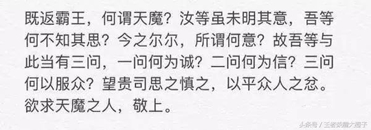 官方大意就是 我这么做也是没有办法(上面有老大),希望你能谅解,如果天魔缭乱返场了,是否就满意了呢?(不闹了呢)。就目前消息来看,返场肯定不止霸王别姬,至于是2款还是3款,看玩家自己的呼声了。吕布-天魔缭乱皮肤,首次上线时间:2016年2月7号,如果返场,售价:1788点券(不打折)