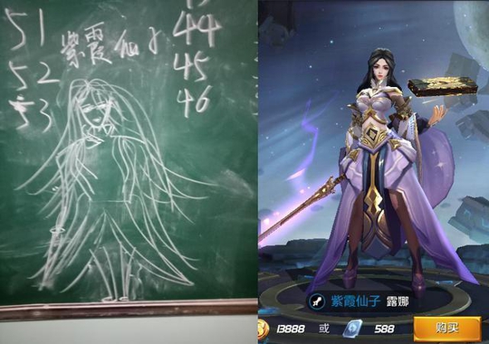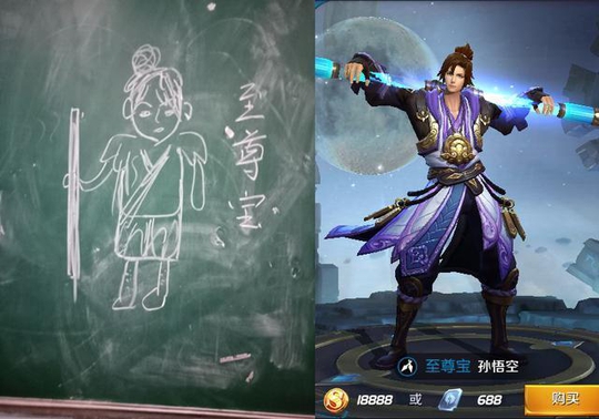 看完这一组黑板涂鸦不知道大家内心是作何感想呢?这些王者荣耀中响当当的美男子竟然画的如此不堪,这真的是“灵魂级画师”啊!特别是咱们的至尊宝,哇,那么炫酷的定海神针、如意金箍棒竟然就被一笔带过了,另外一只手好像杨过啊,这是断了一只手,然后只剩下袖子的节奏吗?