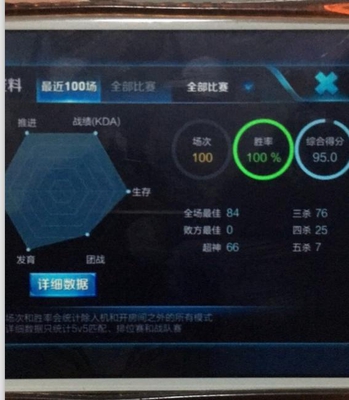 如此之快的速度与完美的数据,这名小伙子将一个游戏玩到如此的地步,真的是让人敬佩不已,他的战绩不止这一点点,同时他还是全赛季的王者,每一个赛季都要玩四五个百星王者的号,每一个号的胜率都是恐怖的80%以上。