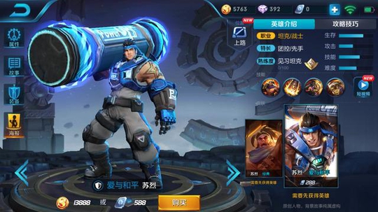 苏烈这个英雄简直粗暴,不怂就是刚,大招撞下去得残一片,有控,有输出,有肉,这个英雄生存能力强,上分就得用有生存能力的,不然用些小脆皮一个失误就一波了。