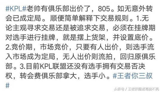 据知情人士爆料,AG超玩会老帅已被其他俱乐部出价805万,挂牌交易成功。
