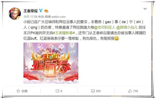 王者荣耀官方就是一个搞事BOY,不但答应了他们的约战,而且还将这场约战放在了王者荣耀的春晚上。