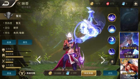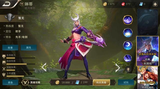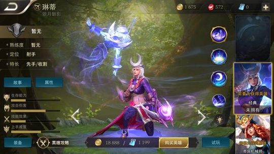 一技能,银月之辉:琳蒂召唤银月侦查并获取敌人视野(琳蒂的第三次普攻造成额外的物理伤害)