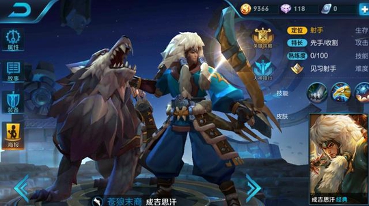 3、成吉思汗:成吉思汗作为一名收割型的射手,所有技能冷却时间加起来大约5秒左右,它的CD冷却时间堪称变态,几乎没有冷却时间。自身还是拥有不俗的远程消耗追击能力的,大招超强的伤害能力可以轻松一套带走对面的后排。