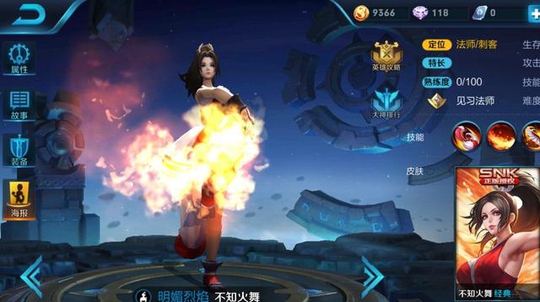 2、不知火舞:这位英雄是几乎没有弱点的法师刺客英雄,它所有技能冷却时间加起来大约18秒左右,但她的二技能花蝴蝶后期几乎是无需冷却时间,进可三扇一套瞬间秒人,退可三段位移灵活走位,不仅是她的高爆发高伤害,还能快支援快发育。
