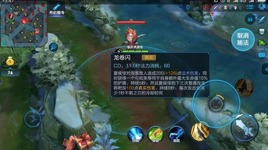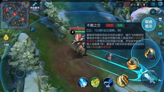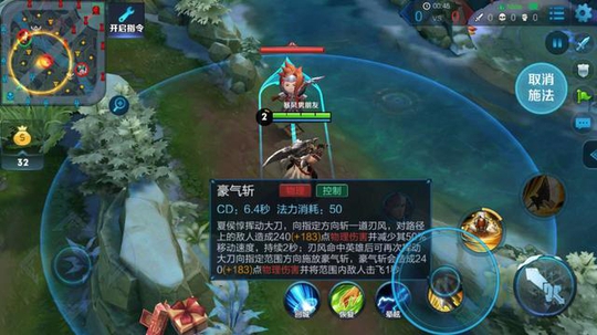夏侯惇三技能具备位移效果,对制定区域造成伤害,并对击中目标造成眩晕效果。
