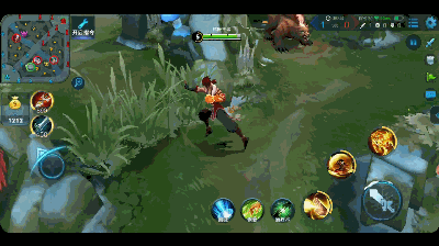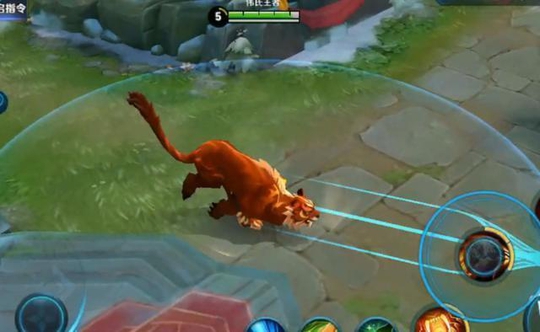 好了我们来看如何卡走路bug模式吧,看下图的动态图,就是在裴擒虎释放2技能的同事里面按大招变身这样变身老虎之后的走路形态就变成了下面那样了。