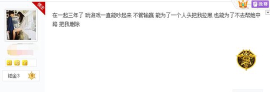 看这句吐槽在一起3年了为了一个人头或者不帮忙都能拉黑,这女友好任性呀。