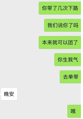 从聊天中可以看出应该是女友没听男友的话,乱带节奏,男友说了一大堆女友直接回复一个晚安(女孩子好像说话越简单问题越严重)在接着往下看。