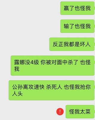 最后看几张这位小伙的吐槽,反正输了赢了都是他的错。