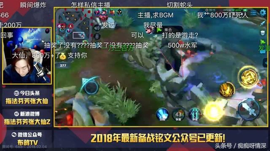 就在大仙直播间经历一波抽奖之后,直播间的人气竟达到了 八百万 热度,不得不说大仙人气是真的高!此时,大仙在排位中选择了关羽这个英雄。同时随着抽奖的结束,直播间热度也降了下来,然后弹幕就开始了!