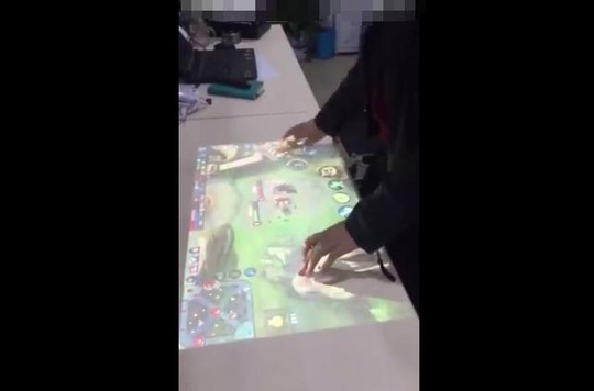 这位玩家玩王者荣耀就是在这个投屏上面玩的,超大的屏幕,看上去好像还是很容易操作的,而玩家就在机器的后面站着,然后左手移动右手伤害,看上去玩的还是很给力的。