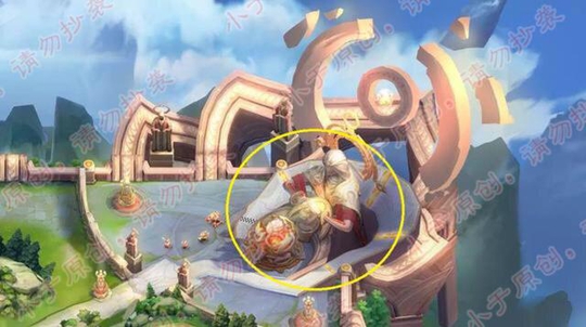 然后在赛道中还有王者峡谷中两位英雄的身影~一个是小萌胖子--梦奇~而另一个就是飞车官方当时使用的鲲和庄周~庄周的位置就在训练营木桩的位置;而梦奇的位置则是一个小亮点;玩家经过梦奇的时候会被梦奇的跑跑劝阻飞起来,然后直接抄近道了~