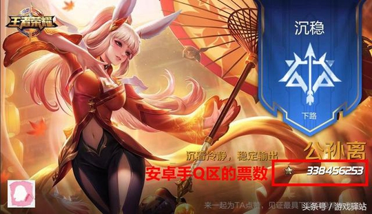 孙尚香:苹果端手Q区和微信区合计票数1.4527亿,安卓端手Q区和微信区合计票数3,731亿,总计5.1837亿票!