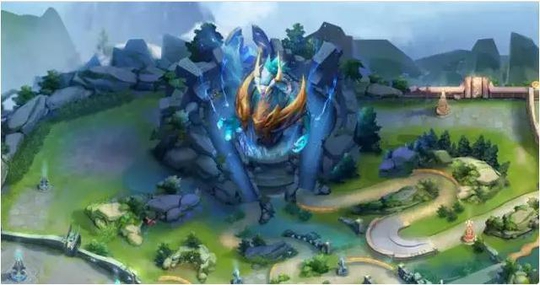 从图片的整体来看,我们可以看到王者峡谷已经由之前的三路变成了一整条联通的赛车跑道了,并且这个赛车跑道是将整个王者峡谷几乎都走上了一个遍从红方的泉水、河道一直到主宰,可以说是一张很大的地图!