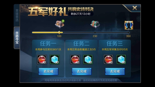 另外,在这个英雄票选下面有一个丝路夺宝的活动。大家不要忘了去领取其中的礼品。但是这个活动是必须要玩几把五军才能得到的。关键是有一个头像框,收集控肯定不能错过。