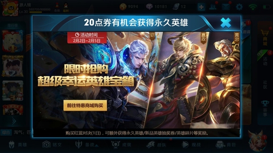 另外就是超级幸运英雄宝箱活动只剩最后一天了。这里面有一个rmb英雄,嬴政。不过这个宝箱的抽中几率我以前给大家说过是2%。因此可能需要抽50次才能抽中一个英雄。并且也不一定抽中嬴政。感觉自己运气特别好的人,可以尝试一下。其他的小伙伴我觉得还是直接买吧。