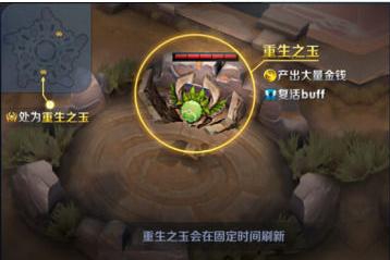 在新地图中,特殊的BUFF重生之玉是大家要注意的东西。在这个不能购买复活甲的时候,重生之玉是很容易狙击到人的地方。只要刷新时间一到,不愁找不到敌人在哪里。