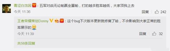 五军对战无论输赢全算输,打的越多胜率越低,这个BUG已经影响到全局的胜率结算,在这里策划Donny给出的回应将会在下个版本进行修复,不会影响大家正常胜率结算的。下个版本估计将会是明天的例行更新。