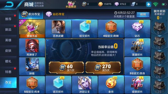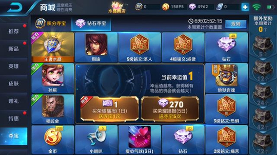 然后就是钻石夺宝奖池里面的牛魔、芈月、刘禅、天使之翼3天替换为周瑜、程咬金、孙膑、地狱岩魂3天。