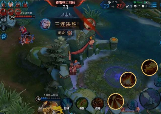 铠虽然是一个肉坦,但还是很轻易的被典韦给打成了残血。恰好这个地形位置在龙BUFF区域,达摩很轻易的使用技能穿过去地形了。