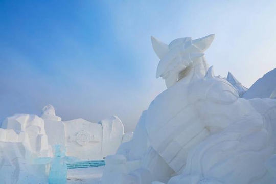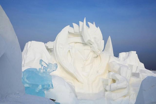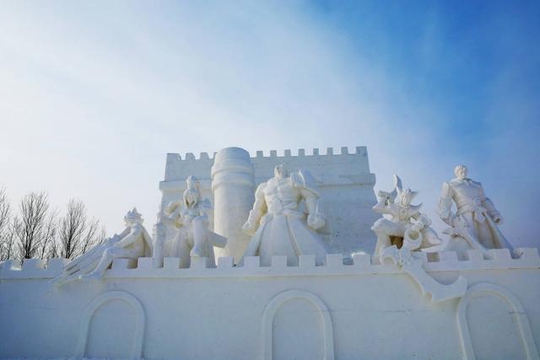 从白天的照片中可以看出来,这里的每一样雪雕的建筑都是王者荣耀中人物的颜值,看上去十分的威严,很多王者荣耀的爱好者们,来到了这里,都觉得自己仿佛出现在了游戏里,这里如今已经成为了冰雪大世界主打的一个景点。