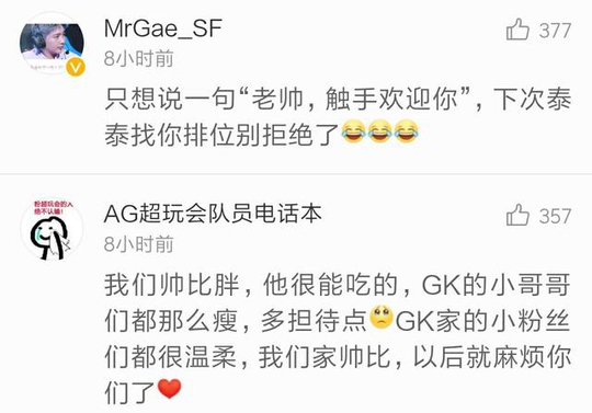 但是小编在深夜发现了gk战队打的一篇微博,意思是某个人来了,欢迎他,和他一起战斗,gk战队在上一届也也是四强的战队,为什么说这个人是老帅?来看看下面微博的评论