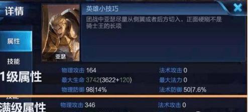 老亚瑟属于进攻型的坦克,可以协助刺客追杀后排,属性并不高,实际也不怎么肉,但脱战后的回复能力一流,配上霸者重装,只要杀不死,十几秒后又是一条好汉。