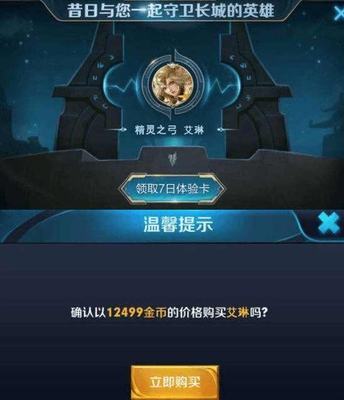 除此之外,王者荣耀的商城中在更新后,添加了艾琳的购买方式,玩家用过12499金币就可以直接购买,虽然这个金币数量让不少玩家看的一头雾水,不过这次艾琳在测试服的上线也预示了不久后有回归正式服的希望。