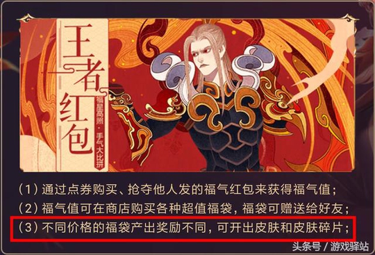 福气值可在福气商城购买超值福袋,福袋按照价位不同可开出不同的奖励(皮肤/皮肤碎片),据悉皮肤有高级也有普通的,比如杨戬和后羿的狗年限定皮肤、宫本传说皮肤等,另外福袋也可以送给好友哦!