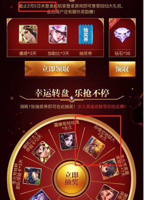 这次活动是天美联合腾讯超级会员推出的活动,只要2月5号之后到28号的玩家登录游戏,可以获得抽奖券一张,就可以免费抽取地狱火永久皮肤!不过这个概率不少玩家表示,你懂得。