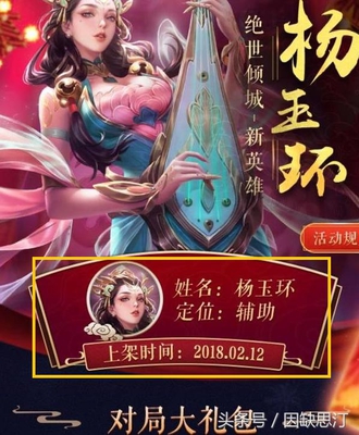 在官方的 “对局大礼包” 活动中,透露出杨玉环会在2018年2月12日上线(下周一),因此到时候肯定很多玩家想要买这个英雄。