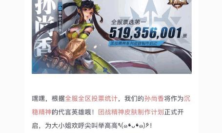 王者荣耀:孙尚香投票数5.2亿,下个限定皮肤归大小姐莫属
