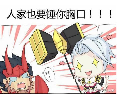 不巧的而是李白和王昭君秀恩爱的一幕刚好被女汉子钟无艳看到,结果拿出自己的大锤对着旁边的廉颇就是一顿狂捶,嘴上还很温柔的直呼人家要捶你胸口哦。可怜的廉颇这回估计没有一个月下不了床了。。。