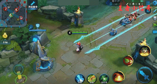 2技能也是一样,导弹的颜色变成了蓝色的,不过要注意的是导弹发射的一瞬间,鲁班面前会环形风圈的效果,为了彰显导弹的速度之快。