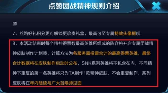 不少已经投票的王者荣耀玩家对于这个活动可能还是一头雾水,通过活动介绍(直接拉到第二页看重点),我们可以看到,王者荣耀这次点赞活动结束后,最受欢迎的阵容组合会有专业团队开启精神皮肤制作,随后将会在年内陆续与玩家见面。