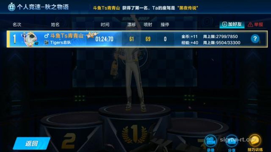 玩飞车的都知道秋之物语,那绝对是简单赛道和普通赛道中的较难的存在,具备很多三星级赛道的难点,是一个很全面的地图,在这里面没有一定的技术和赛道熟悉度,那么在比赛开始道结束基本就像是在玩碰碰车。斗鱼主播青山居然01:24:70刷新了记录,可谓是目前为止全服第一的记录。