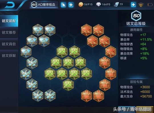 蓝色五夺萃加吸血8%,五隐匿。绿色十鹰眼。红色五祸源,五无双。或者十祸源。射手的铭文主要思路是:穿透、移动速度、暴击和暴击效果。很多人不知道暴击伤害是怎么得来的,于是无脑堆暴击也打不出来。实际上,要打出暴击伤害,要有一定的攻击值,暴击百分比以及暴击效果,缺一不行。铭文中加一点吸血也是有必要的这样前期不用回家,如果回一次家,那损失的经济是非常多的。