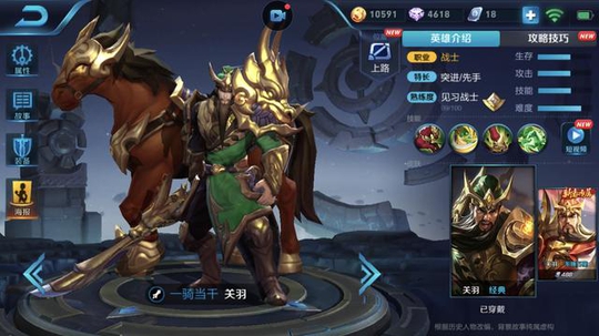 关羽这个英雄在王者局出场率非常高,可以说几乎是非ban必选,主要是因为关羽可以适应所有的对局,对阵容的适应性极强,再一个就是关羽游走gank的能力也是非常强的,奔跑起来分分钟就能从下路到上路,游走支援非常给力,半肉出装的情况下,都可以一刀劈废一个小脆皮,但是黄金局的关羽并没有什么用武之地,原因就是跑不动