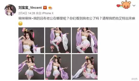 但他本人似乎对这次的cos很满意,还学貂蝉说要找老公吕布……剩下的小叽我说不下去了,你们还是自行感受吧……
