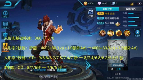 裴擒虎是一名灵活的刺客。不过他的生存能力较差,基于此,天美提高了人形态2技能护盾没护盾值并且缩短了CD时间。最后他的移速也得到了加强。