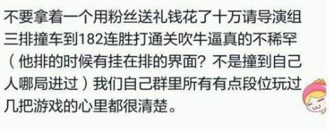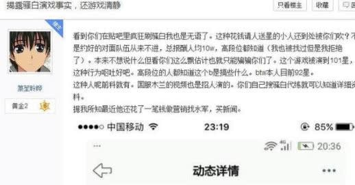 根据贴吧大手子的爆料,骚白在高分段的名声是很臭的,达到王者之后几乎都采用了请人送分的手段,并且该大手子也是曾经受到了骚白的演戏邀请拒绝了骚白,义愤填膺的他直接选择曝光骚白的导演套路。