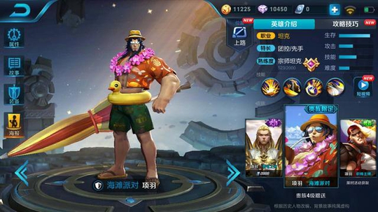 项羽也拥三款限定皮肤:分别是霸王别姬,海滩派对,职棒王牌。其中霸王别姬是限时出售,海滩派对是贵族4级赠送,职棒王牌是限时活动赠送。项羽的三款皮肤和赵云性质类似。大家平时比较熟悉的可能是霸王别姬,不会想到项羽居然也是峡谷中拥有限定皮肤最多的男人。