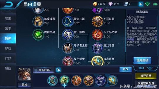 作为辅助性坦克,经济一般偏低,在出装方面应尽量考虑金币与收益,所以牛魔第一件可以选择出抵抗之靴,增加生存的基础上还可以减少被控制时间;第二件出救赎之翼,这件装备可以说是辅助保护性坦克必出的装备之一,当自己经济全队最低时候会有额外金币奖励,这个奖励是十分客观的,而且主动释放可以给自己或频危队友增加护盾和移动速度;第三件出红莲斗篷,牛魔作为辅助性英雄,攻击能力是较差,可以利用红莲斗篷的被动打出更多的额外输出;第四件出不祥征兆,作为前排不祥征兆这件装备可以说是十分针对敌方射手刺客的制裁装备,在增加物理防御和血量基础上,大幅度减少敌方的攻速与移速,可以很大程度的限制敌方的输出;第五件选择魔女斗篷的原因便是被动的护盾可以抵挡对面法师的至少一个技能,最后出极寒风暴,来减少技能冷却时间和利用其被动降低敌方英雄的攻速与移速。