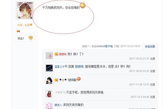 这句话一说出来就有人不服气了,武则天哪里弱了,为什么换武则天会后悔,武则天明明很强好不好,是你自己不会玩吧等等之类的评论纷纷刷了起来,小编也觉得并没有垃圾的英雄,只有不会玩的玩家,在一个大神手里,大乔照样可以单杀你,而且武则天是一直都是版本的强势法师,只是有的人少,玩的人也少所以才有人觉得武则天不强,连楼主自己都说自己用武则天上了王者,简直是啪啪打他的脸。
