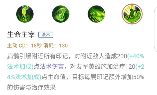 觉醒技能:扁鹊引爆附近所有印记,对附近敌人造成200(+40%法术加成)点法术伤害,对友军英雄施加治疗120(+24%法术加成)点生命值,目标每层印记额外增加50%的伤害与治疗效果。可怕的技能效果,扁鹊的这个技能效果太过于恐怖,完全就是可以炸出ADC一样的伤害。其实扁鹊本来就可以说是一个法师狄仁杰。