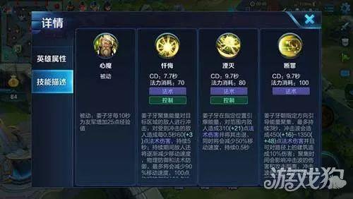 被动-心魔:姜子牙每数秒会为友军增加一定的经验值,这对队友的发育非常有利,能在等级上轻松压制敌人。游戏中,三级升四级的节点非常重要,玩家们往往会利用快速到达四级后配合大招一套技能尝试击杀,或打出优势,而姜子牙的被动能更有利于队友在这个节点上创造优势。